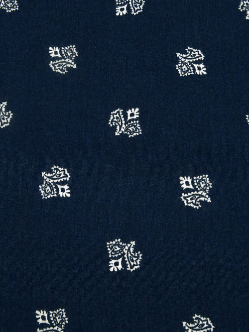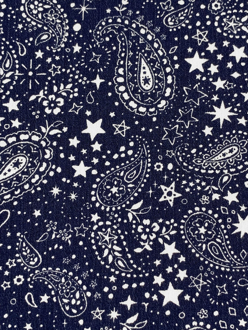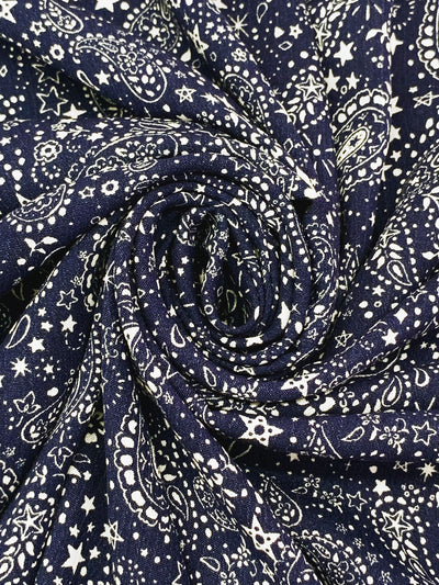 Navy/White 100% Rayon Cosmic Paisley Print Crinkle Challis 52W