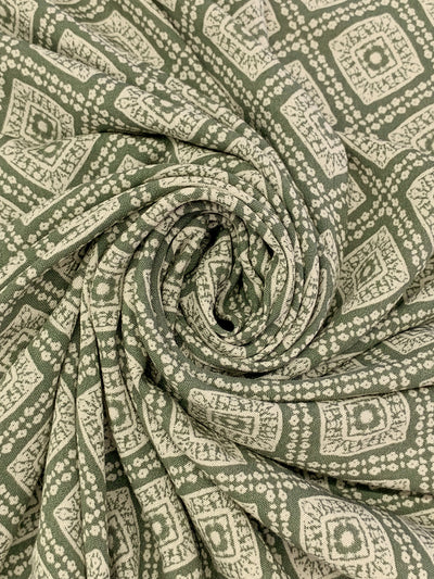 Old Bamboo/Antique Off-White 100% Rayon Medallion Lattice Print Crinkle Challis 54W