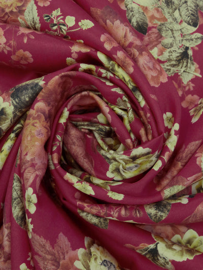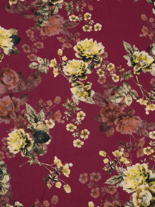 Claret Red/Old Gold/Chestnut/Multi 100% Cotton Floral Print Sateen Shirting 42W