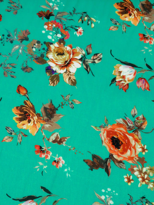 Ocean Green/Apricot/Soft Pink/Multi 100% Cotton Floral Print Lawn 43W