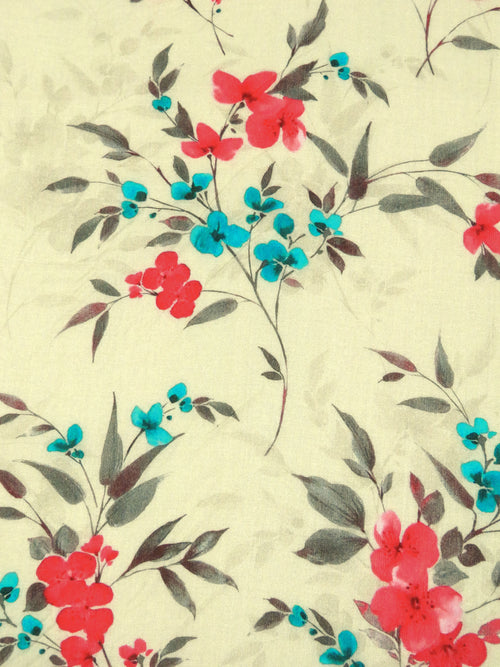 Pale Goldenrod/Vivid Teal Blue/Desire Red/Multi 100% Cotton Floral Stem Print Voile 42W
