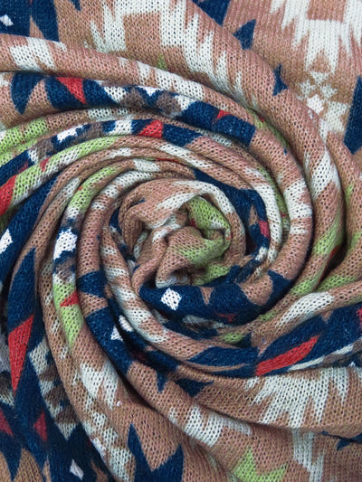 Dark Navy/Smoky Pink/Cinnabar/Multi Polyester/Lycra Tribal Print Sweater Knit 54W
