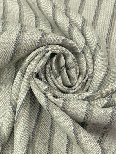 Taupe/Thunder Gray/White Chocolate 100% Linen Yarn-Dyed Vertical Stripe Weave Midweight Woven - European Mill - 59W