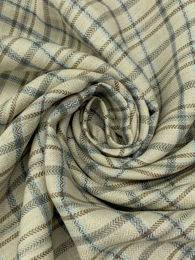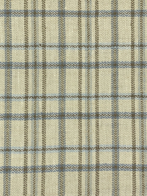 Sandstone/Cadet Blue/Raw Umber 100% Linen Yarn-Dyed Plaid Weave Midweight Woven - European Mill - 60W