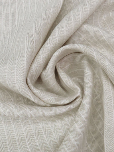 Sand Dollar/Soft White 100% Linen Vertical Stripe Herringbone Weave Midweight Woven - European Mill - 59W