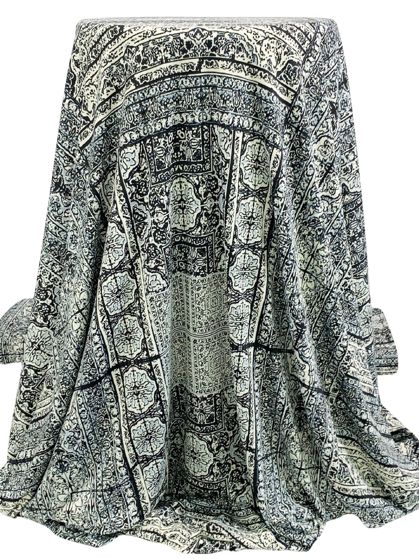 Cream/Old Lavender/Black Polyester/Lycra Large Ornate Print DTY Knit 57W