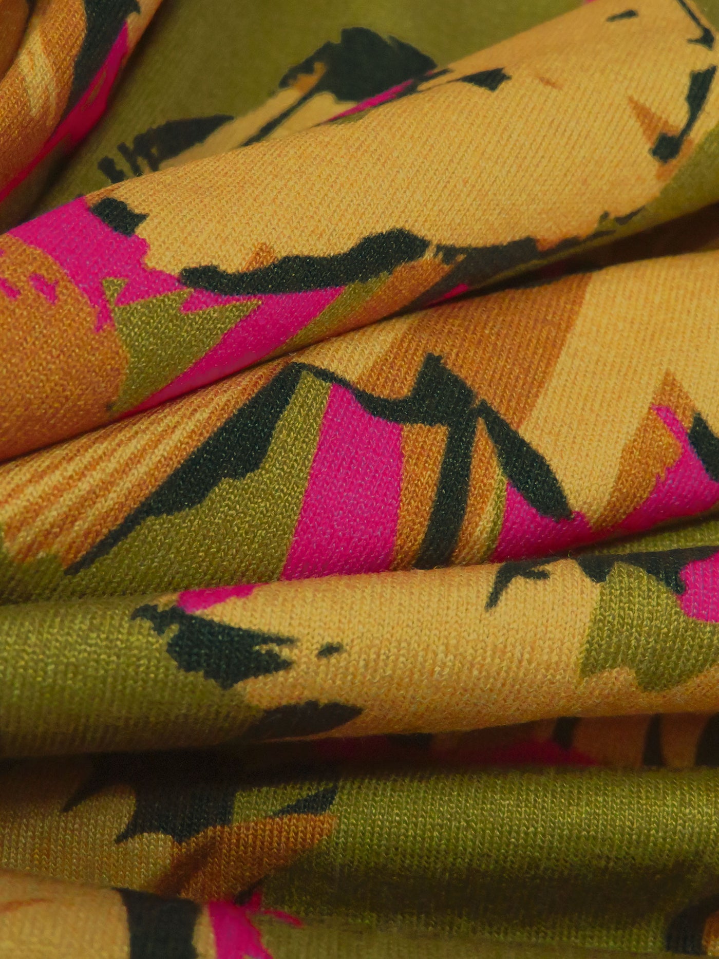 Magenta/Honey/Earthy Olive Rayon/Lycra Artsy Floral Print Jersey Knit - Imported From France - 56W