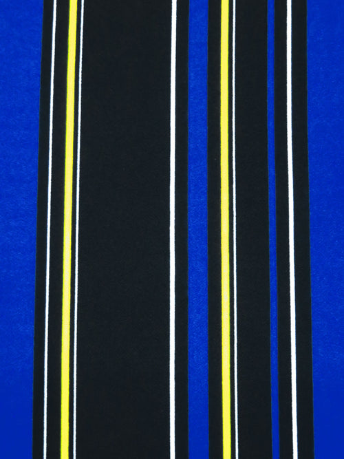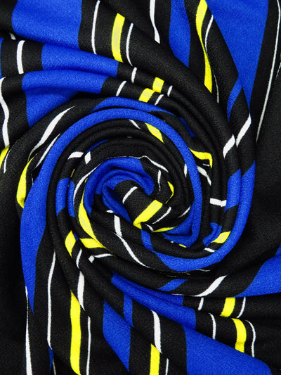 Black/Rich Blue/White/Middle Yellow Polyester/Lycra Vertical Stripe Print Crepe Double Knit 56W