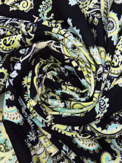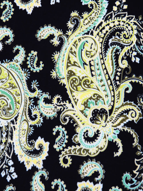 Limerick/Black/Caribbean Green/Multi Polyester/Lycra Large Paisley Print Crepe Double Knit 58W