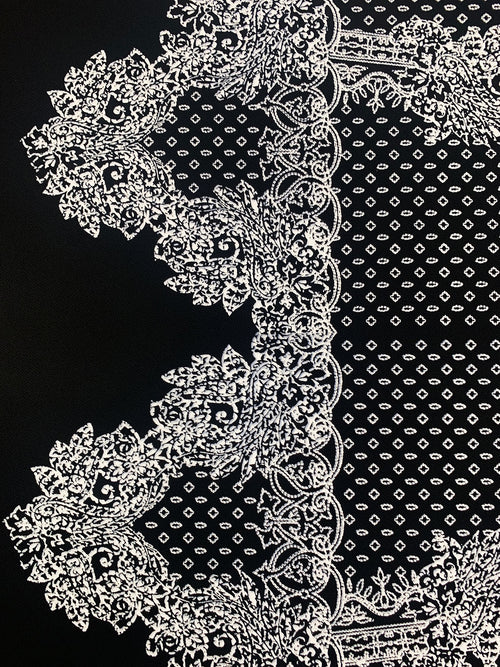 Black/White/Light Slate Polyester/Lycra Large Single Border Ornate Puff Print Liverpool Double Knit 56W