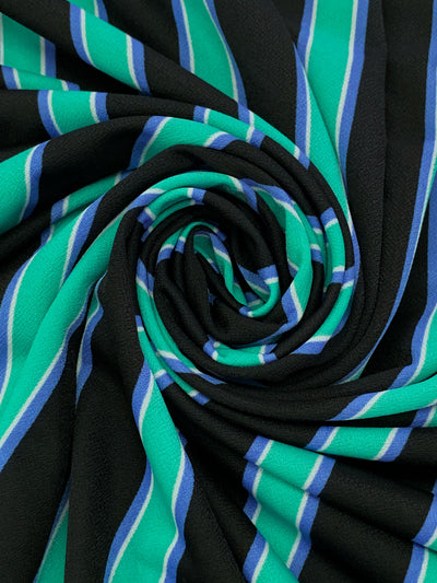 Sea Green/Black/True Blue/White Polyester/Lycra Vertical Stripe Print Crepe Double Knit 58W