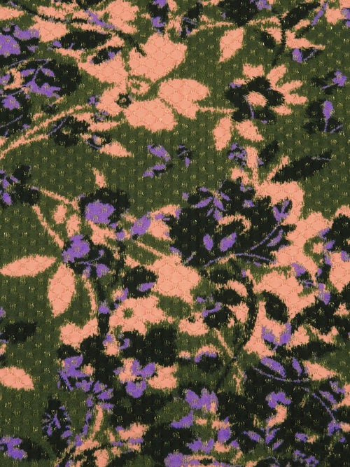 Army Green/Light Salmon/Deep Lilac/Multi Polyester/Metallic/Lycra Painterly Floral Print Honeycomb Weave Knit - NY Designer - 50W