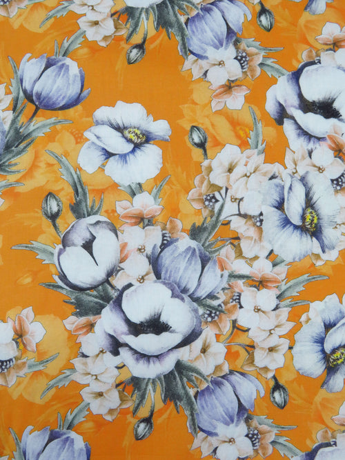 Bright Marigold/Cyber Grape/White/Multi 100% Cotton Large Floral Bunch Print Lawn 42W