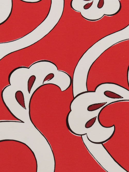 Scarlet/Cream/Black/Cabernet Polyester/Lycra Large Ornate Scrolls Print ITY Knit - NY Designer - 56W