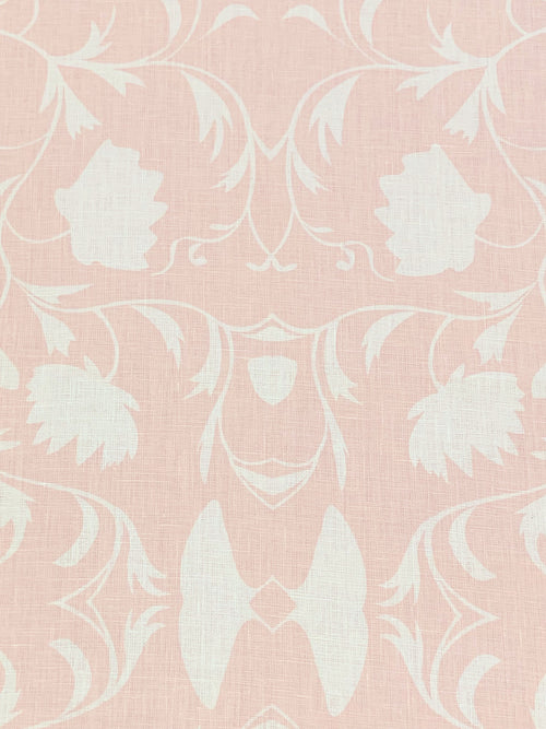 Pale Ballet Pink/Eggshell 100% Linen Floral Vines Print Heavy-Weight Woven - European Mill - 54W