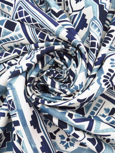 Off-White/Space Cadet/Steel Blue/Multi 100% Cotton Geometric Tile Print Canvas - European Mill - 56W