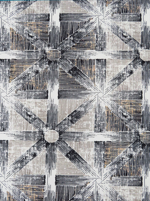Jute Brown/Black/Off-White/Multi 100% Cotton Star Tile Print Canvas - European Mill - 56W