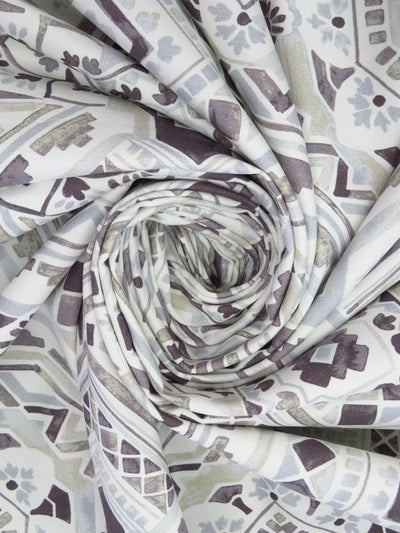 Off-White/Disappearing Purple/Beau Blue/Multi 100% Cotton Geometric Tile Print Canvas - European Mill - 58W