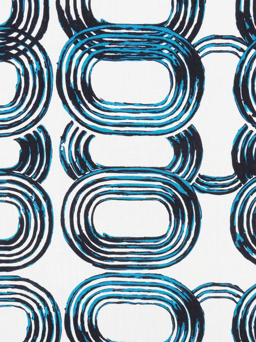 White/Deep Pacific Blue/Navy 100% Linen Overlapping Rings Print Canvas - European Mill - 54W