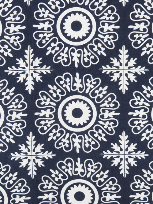 Navy Blue/White 100% Linen Large Ornate Tile Print Canvas - European Mill - 56W