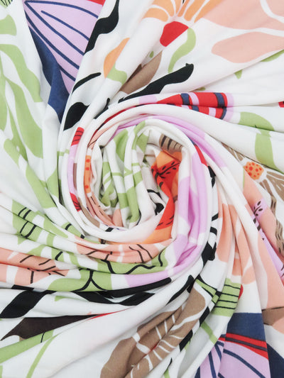 Off White/Aloe Green/Mocha Mousse/Multi Polyester/Lycra Flora And Fauna Print ITY Knit - NY Designer - 58W