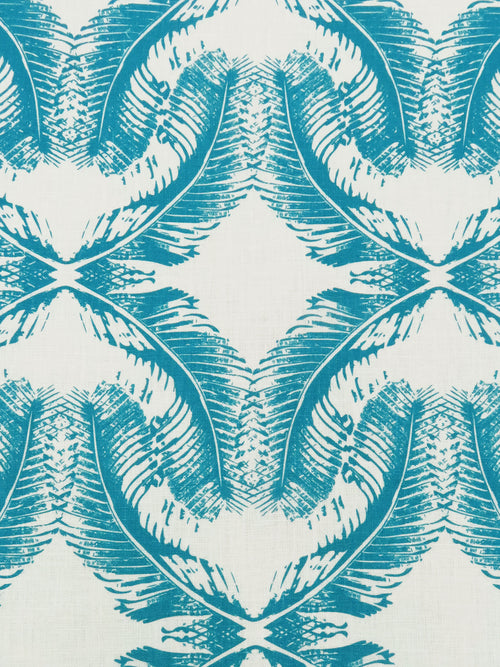 Rich Pacific Blue/Paper White 100% Linen Mirrored Plumage Print Canvas - European Mill - 56W