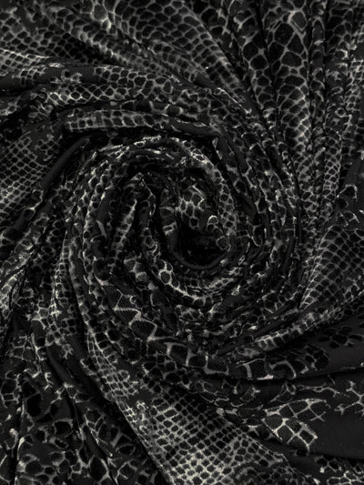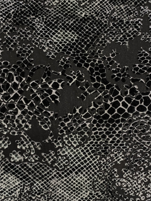 Silver/Black Polyester/Lycra Snakeskin Print Floral Burnout Velvet Knit 54W