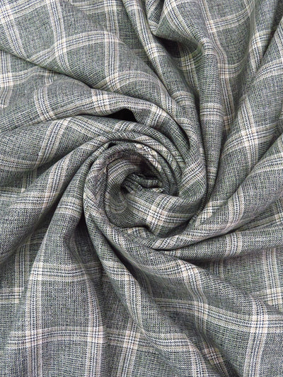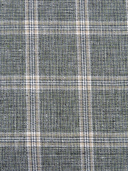 Sage/Dark Teal/White/Tan 100% Linen Yarn-Dyed Plaid Shirt Weight Woven 56W