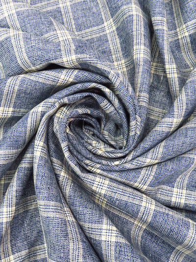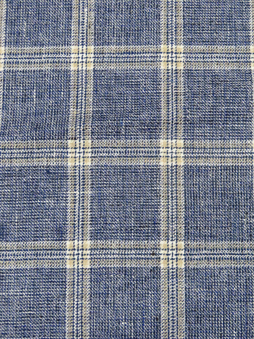 Lapis Blue/White/Tan 100% Linen Yarn-Dyed Plaid Shirt Weight Woven 56W