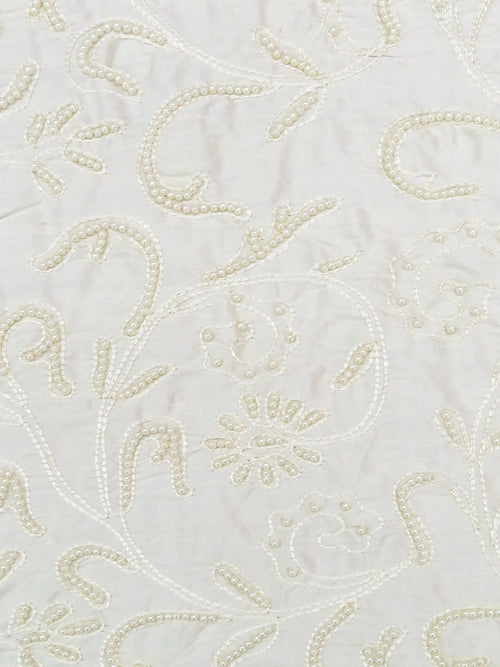 Soft Cream/Pearl 100% Silk White Floral Embroidered And Beaded Dupioni 41W