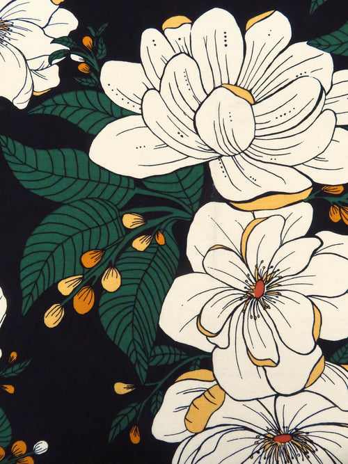Golden Orange/Pearl White/Black 100% Rayon Micro Floral Print Gauze 54W