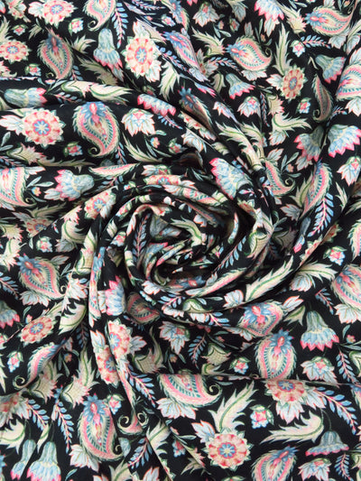 Black/Medium Persian Blue/Cream/Multi 100% Linen Stylized Paisley Floral Print Shirting 58W
