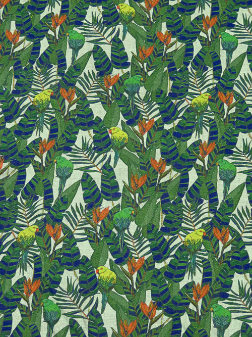 Fern Green/Dark Imperial Blue/Dark Lemon Lime/Multi 100% Linen Tropical Floral & Birds Print Shirting 58W