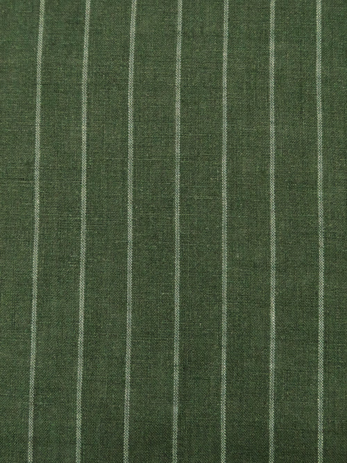 Deep Moss Green/Lamb's Ear Green 100% Linen Vertical Stripe Shirt Weight Woven 60W