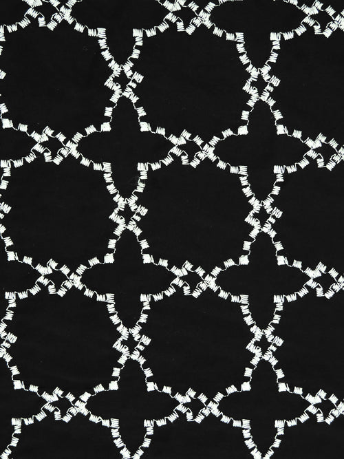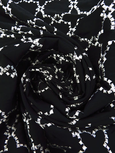 Black/Light Pebble Gray 100% Polyester Embroidered Geometric Tilework Taffeta - NY Designer - 54W