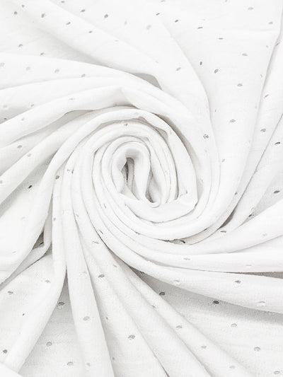 White 100% Cotton Diagonal Stripe Eyelet Dot French Terry Knit 60W