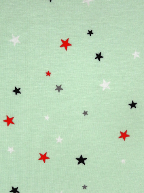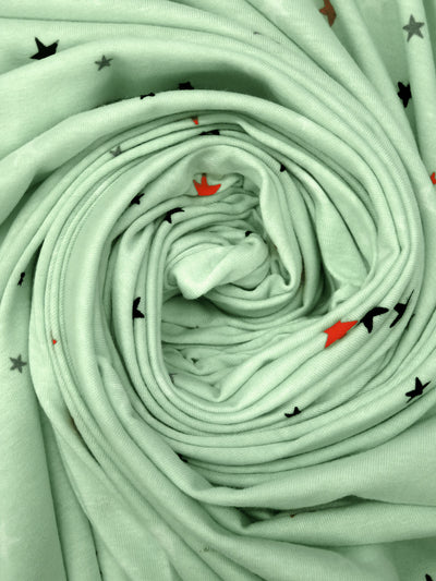 Celadon/Scarlet/Black/Multi Rayon/Lycra Stars Print Jersey Knit 60W