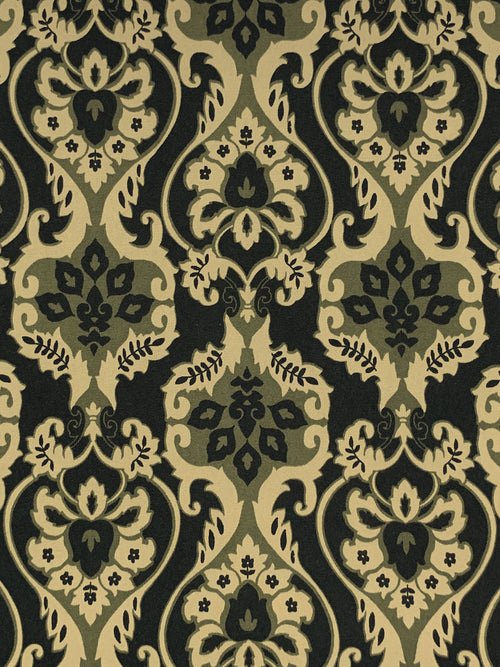 Dark Olive Green/Tan/Black Polyester/Lycra Damask Print DTY Knit 58W