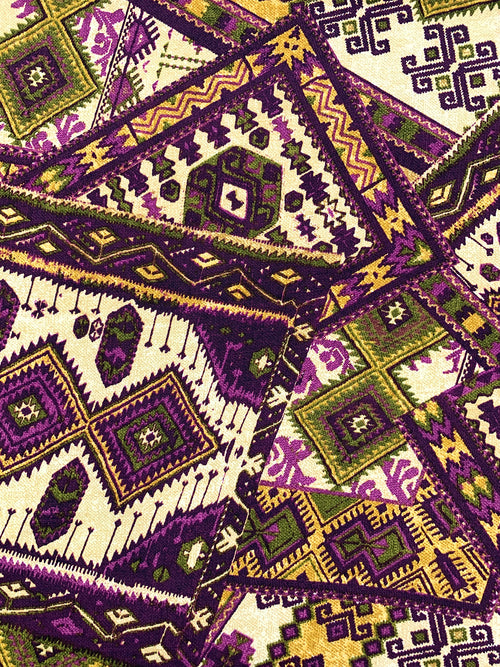 Maize/Deep Purple/Multi Polyester/Lycra Southwest Patchwork Print DTY Knit 60W