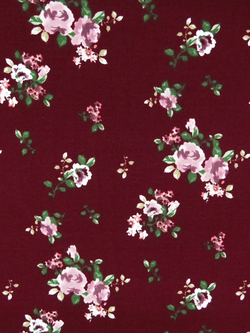 Dark Scarlet/Fern Green/White/Multi Polyester/Lycra Small Floral Print Double Brushed Knit 54W