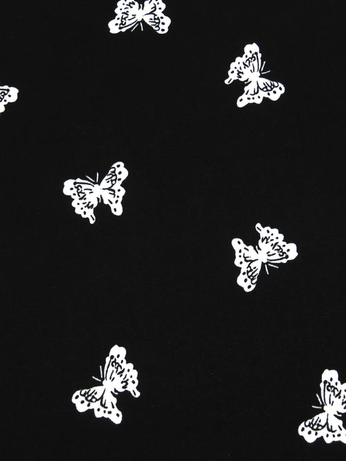 Black/White Polyester/Lycra Butterfly Print Double Brushed Knit 54W