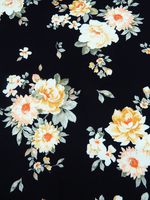 Black/Sage/Dark Goldenrod/Multi Polyester/Lycra Floral Cluster Print Double Brushed Knit 60W