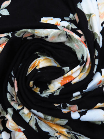 Pumpkin/Black/Sage/Multi Polyester/Lycra Floral Bouquet Print Double Brushed Knit 60W