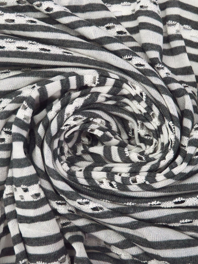 Shadow Gray/Off-White 100% Rayon Horizontal Stripe Eyelet Knit 70W