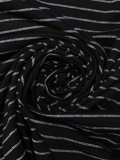 Black/Silver Rayon/Metallic/Lycra Horizontal Stripe Weave Jersey knit 60W
