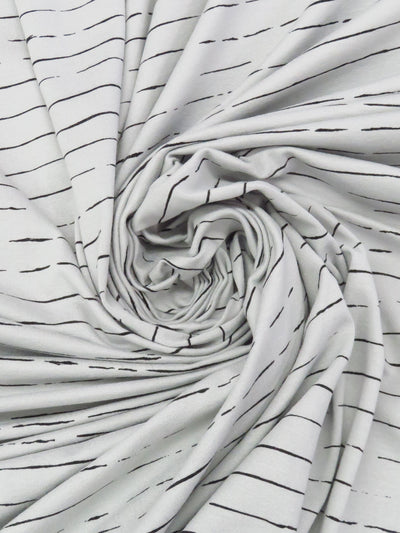 Silvery Gray/Black Rayon/Lycra Horizontal Broken Stripe Print Jersey Knit 60W