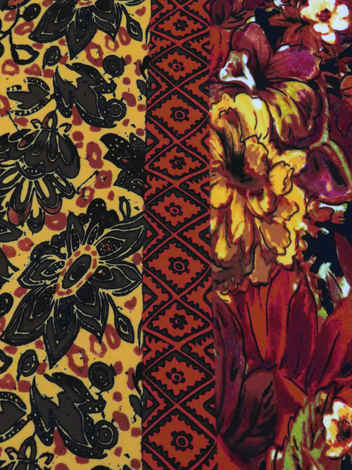 Goldenrod/Rust/Black/Multi Polyester/Lycra Double Border Floral Print DTY Knit 56W