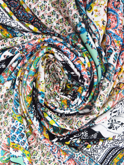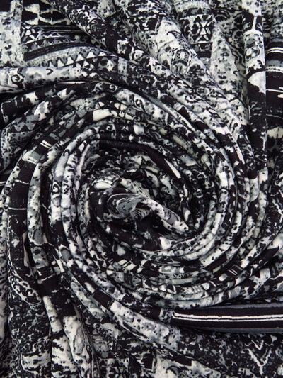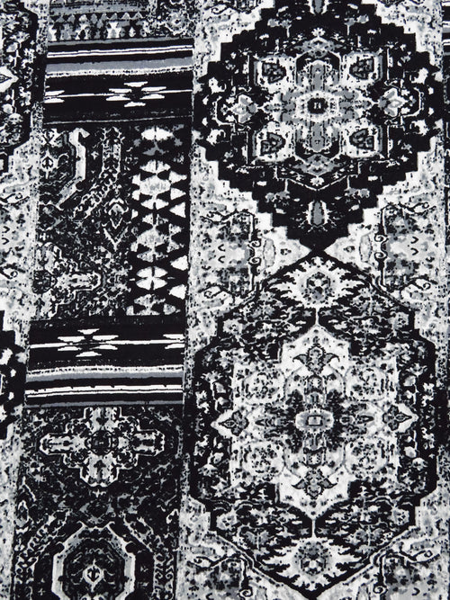 Black/White/Mid Gray Polyester/Lycra Bohemian Patchwork Print DTY Knit 60W
