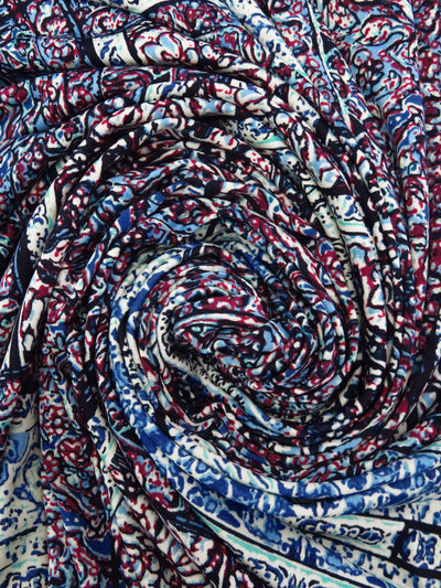 Cerulean Frost/Dark Burgundy/Black/Multi Polyester/Lycra Double Border Mirrored Ornate Tile Work Print DTY Knit 58W