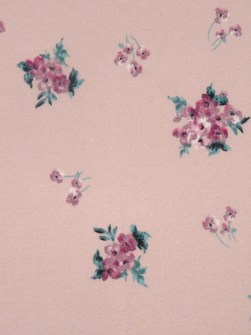 Light Dusty Rose/Mauve Taupe/Cadet Blue/Multi Polyester/Lycra Floral Bouquet Print Double Brushed Knit 58W